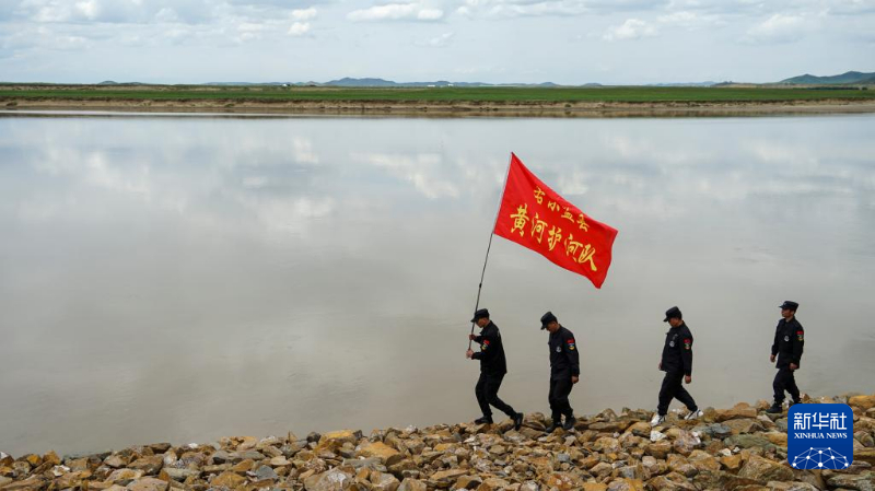 在阿壩州若爾蓋縣,黃河護(hù)河隊(duì)隊(duì)員正在巡河。新華社記者 尚文意 攝