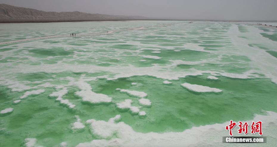夏日,位于青海海西州茫崖市花土溝鎮(zhèn)的翡翠湖宛如色彩絢麗的油畫被描繪在蒼茫的柴達木盆地上,淡青、翠綠、深綠色的湖水如碎玉散落在大漠戈壁上,充滿生機。茫崖翡翠湖南依昆侖山,北靠阿爾金山,總面積約26平方公里,屬于硫酸鎂亞型鹽湖,由于所含礦物質濃度的不同,致使湖面顏色深淺不一。18日,由中新社青海分社,青海省海西州茫崖市委、茫崖市人民政府共同主辦的“赴蒼茫之崖品人間煙火”青海·茫崖2023美食大會在茫崖市正式啟動。近日,活動團隊來到茫崖翡翠湖進行拍攝采風。
