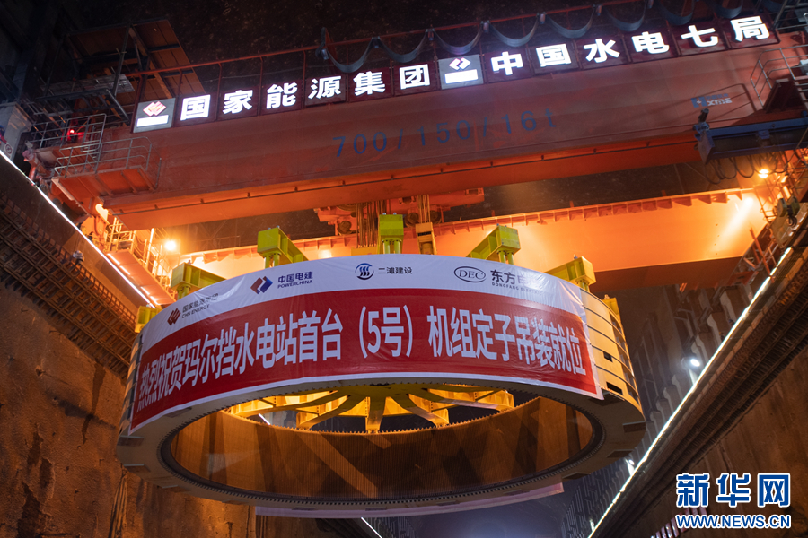 瑪爾擋水電站首臺機(jī)組定子吊裝成功
