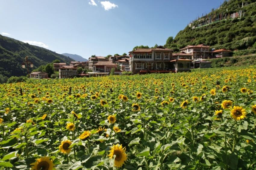 松崗鎮(zhèn)洛威村的向日葵進(jìn)入花期,浪漫的花海和傳統(tǒng)藏式民居相結(jié)合,勾勒出一幅美麗的鄉(xiāng)村美景圖。松崗鎮(zhèn)供圖