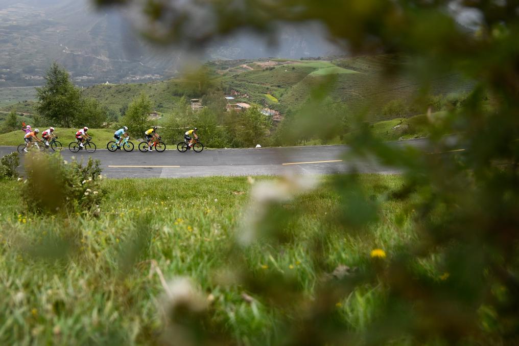 7月13日,參賽選手在比賽中騎行。新華社記者 張龍 攝