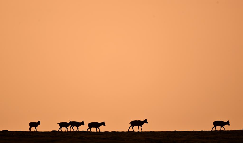 郭雪虎說,現(xiàn)在,每年有超過3萬只雌性藏羚羊回到它們的出生地卓乃湖,誕下幼仔。如今的可可西里,在草地上、在山坡旁,不時會看到成群的藏羚羊,或低頭覓食,或飛馳而過,耳畔不時能聽到它們?nèi)岷偷慕新暋9┗⒄f,僅可可西里一地,藏羚羊數(shù)量已從20世紀80年代末的不足2萬只,恢復到超過7萬只。