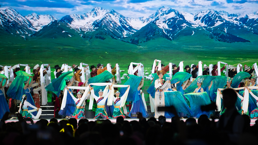 演出現(xiàn)場(chǎng),燈光秀、曲藝表演、民族歌舞、服飾展演、情景朗誦等綜合藝術(shù)形式輪番上演,為現(xiàn)場(chǎng)觀眾獻(xiàn)上了一場(chǎng)精彩的視聽盛宴。其中,海南州藏族服飾藝術(shù)嘉年華是當(dāng)?shù)刈罹哂绊懥Φ拿褡逦幕放疲彩钱?dāng)?shù)厝罕娚钪械乃囆g(shù)盛會(huì)?;顒?dòng)將傳統(tǒng)藏族服飾品牌與創(chuàng)新服飾時(shí)尚品牌融為一體,通過(guò)藏族傳統(tǒng)服飾和現(xiàn)代服飾展演,充分展示了海南州豐富多彩的藏族服飾文化魅力。
