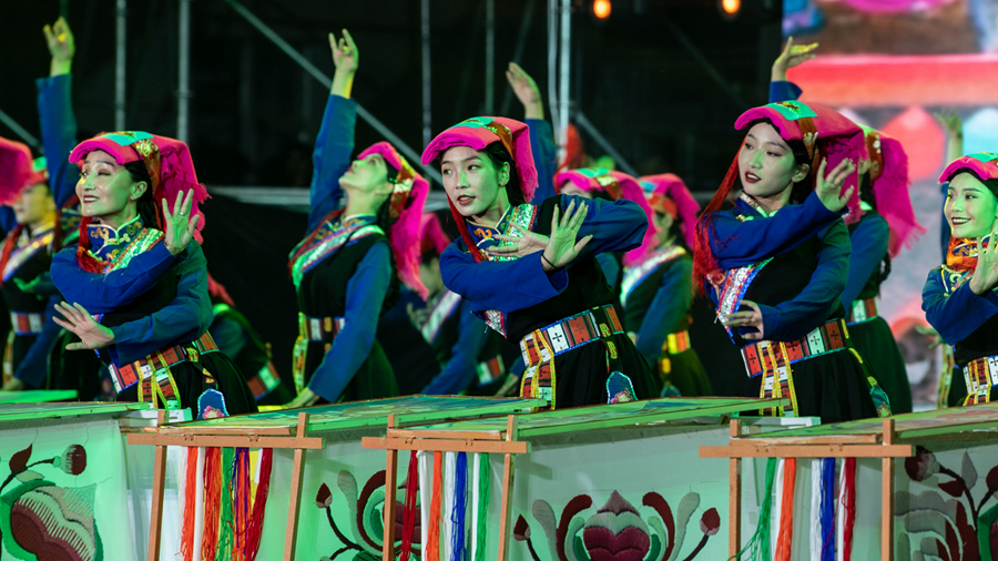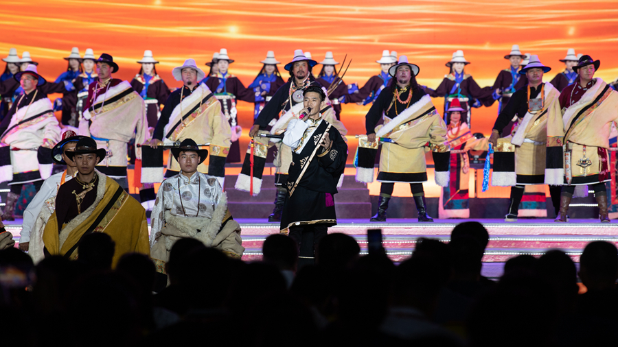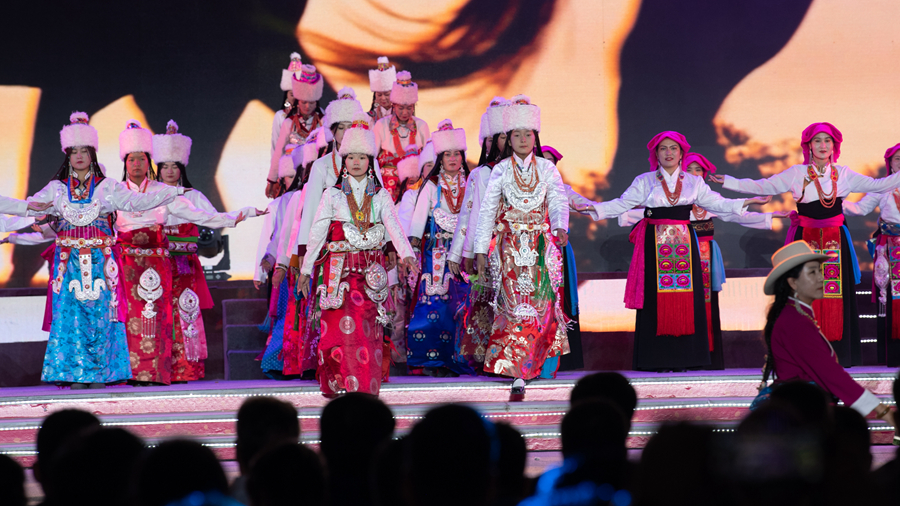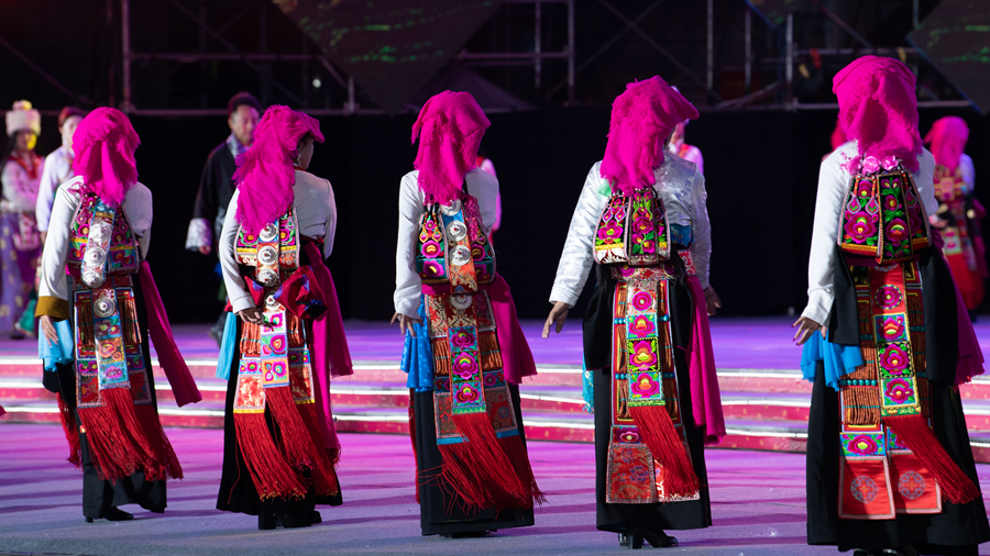 7月31日,慶祝青海省海南藏族自治州成立70周年藏族服飾藝術(shù)嘉年華迎賓晚會(huì)現(xiàn)場(chǎng)。