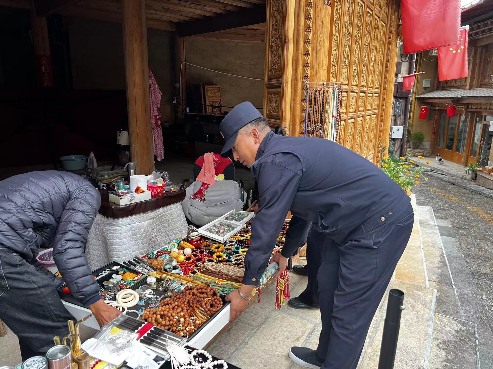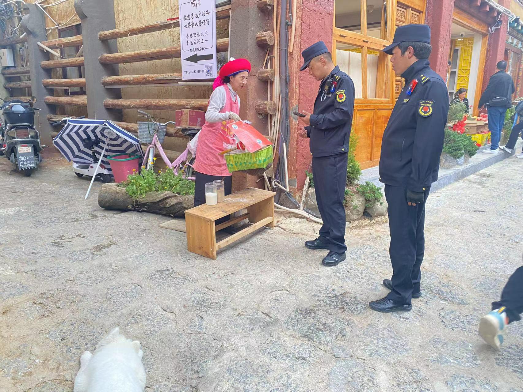 整治過程中,綜合行政執(zhí)法人員全天候無縫巡查,重點(diǎn)對出店經(jīng)營、占道經(jīng)營、亂停亂放、流動攤販無序擺攤等問題進(jìn)行整治。排查月光廣場等公共區(qū)域擺攤?cè)藛T,凡屬古城內(nèi)商戶的一律要求返回店內(nèi)買賣;屬于流動攤販的及時引導(dǎo)至劃定的攤位;對古城內(nèi)所有亂停亂放的機(jī)動車和非機(jī)動車,及時找到使用人,要求停放至指定區(qū)域,確保游客出行更加方便,市容更加整潔有序。圖為綜合行政執(zhí)法人員在勸導(dǎo)占道經(jīng)營攤點(diǎn)。