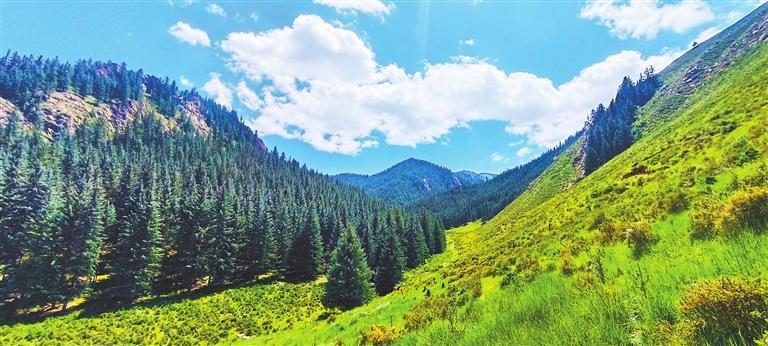 夏日的祁連山草木青翠,風(fēng)景如畫。