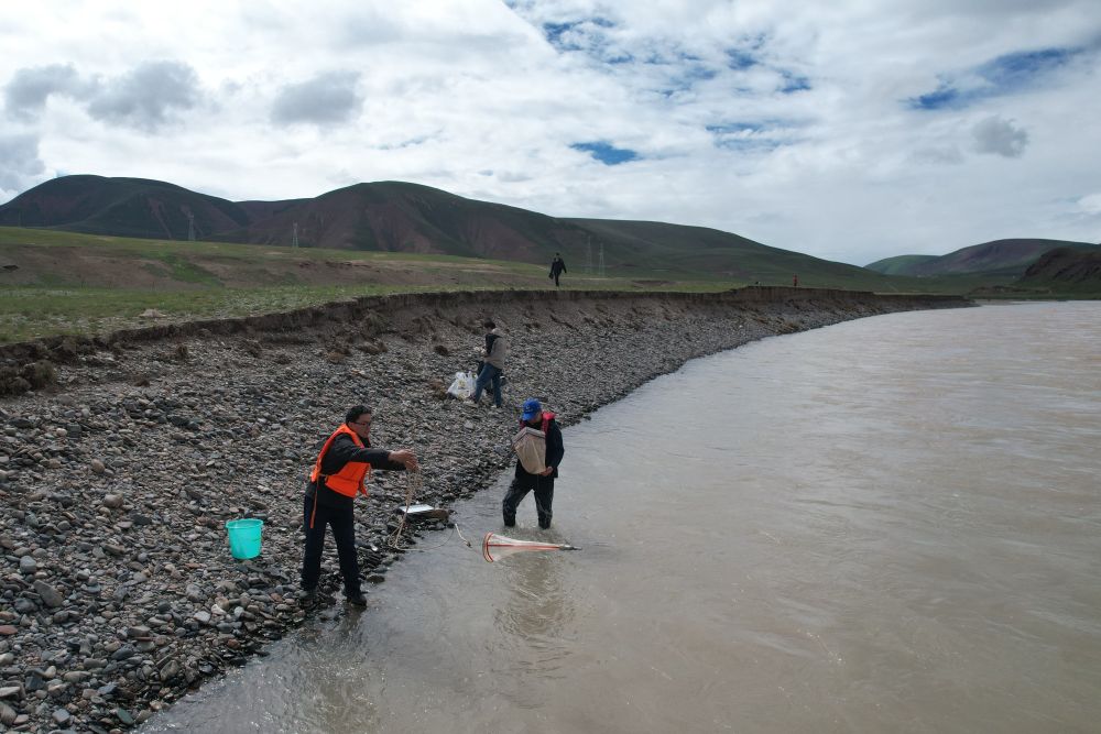 來自長江科學院河流研究所的科考隊員徐志成和楊緒海,每到一個采樣點就采集河道床沙和懸沙樣品,測量河寬、水深、比降、流速,對比此前科考觀測數(shù)據(jù),分析長江源區(qū)河道水沙輸移特性和河床演變情況。