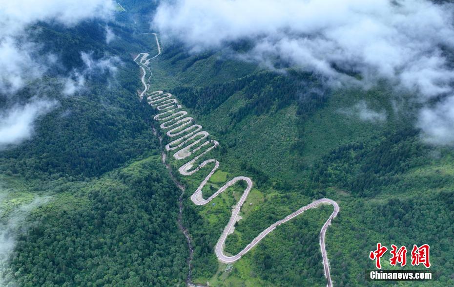 神仙池景區(qū)28道拐風(fēng)光。(無人機照片)安源 攝