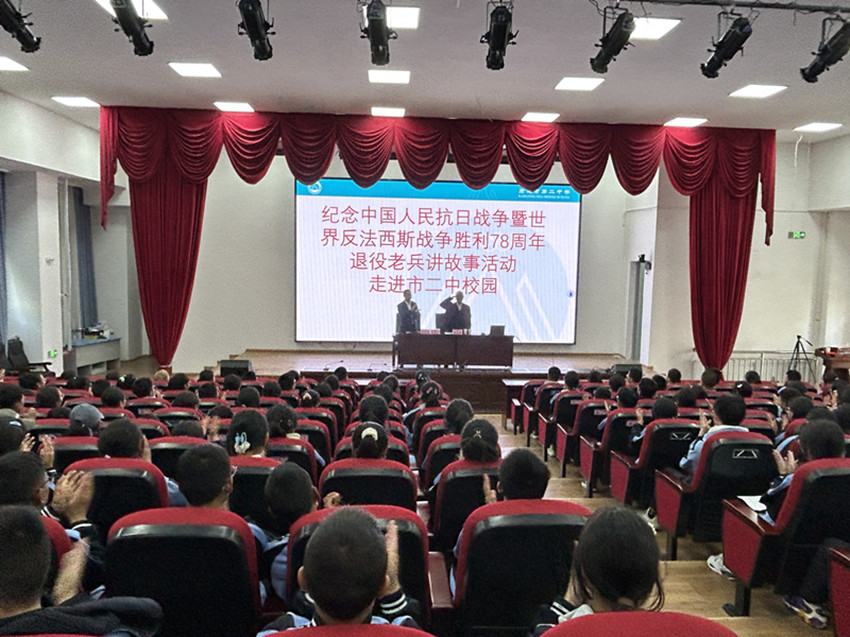 9月4日,康定市第二中學(xué)階梯教室里座無(wú)虛席,85歲高齡的康定籍退役老兵熊志榮正在向該校學(xué)生們講述保家衛(wèi)國(guó)的故事。[詳細(xì)] -