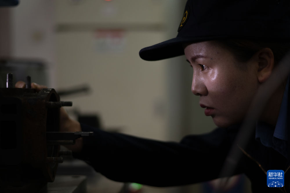 10月12日,在中國鐵路青藏集團有限公司西寧東車輛段制動班組,馬婷檢查120閥主閥內(nèi)腔。新華社記者 張龍 攝