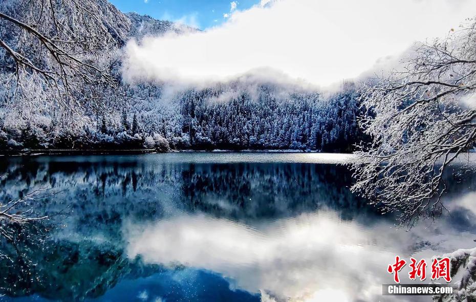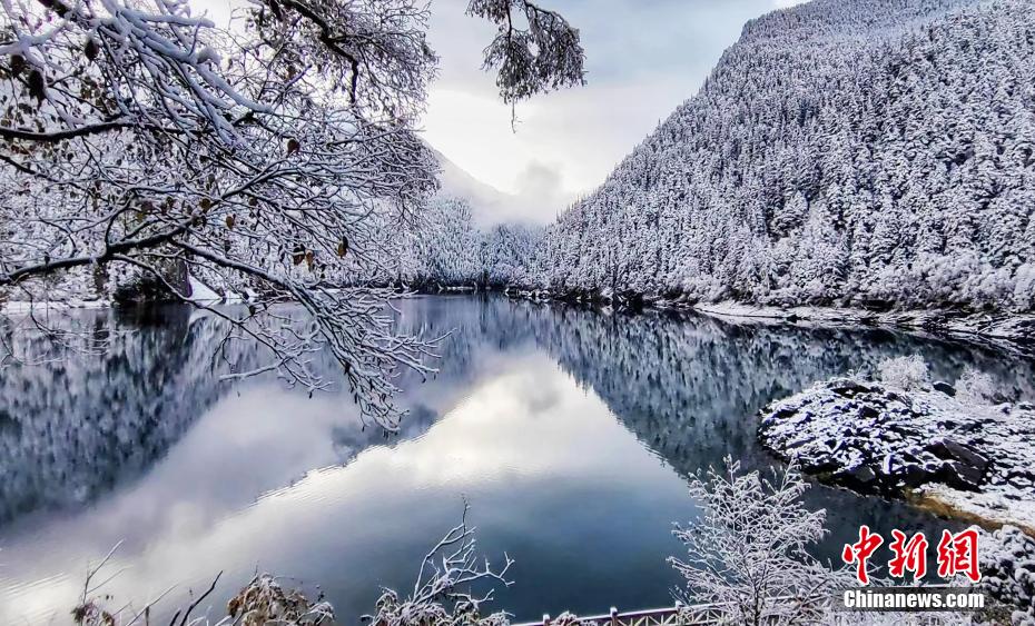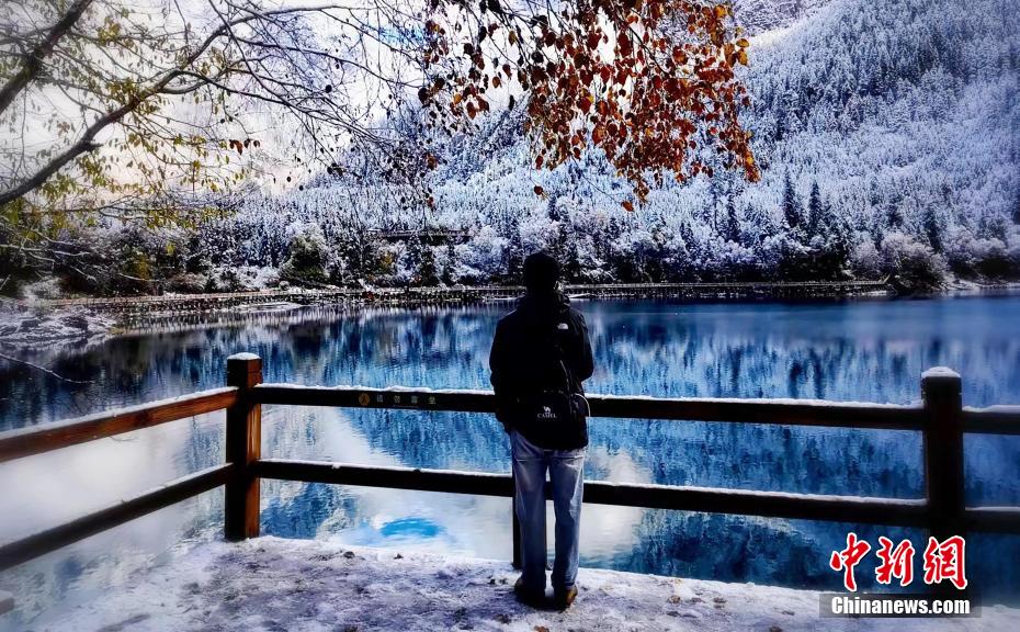 10月18日晚,九寨溝景區(qū)迎來大面積降雪,景區(qū)內(nèi)的長海、五彩池等景點(diǎn)披上銀裝,五彩秋葉與白雪相撞,美得像童話世界一般。
