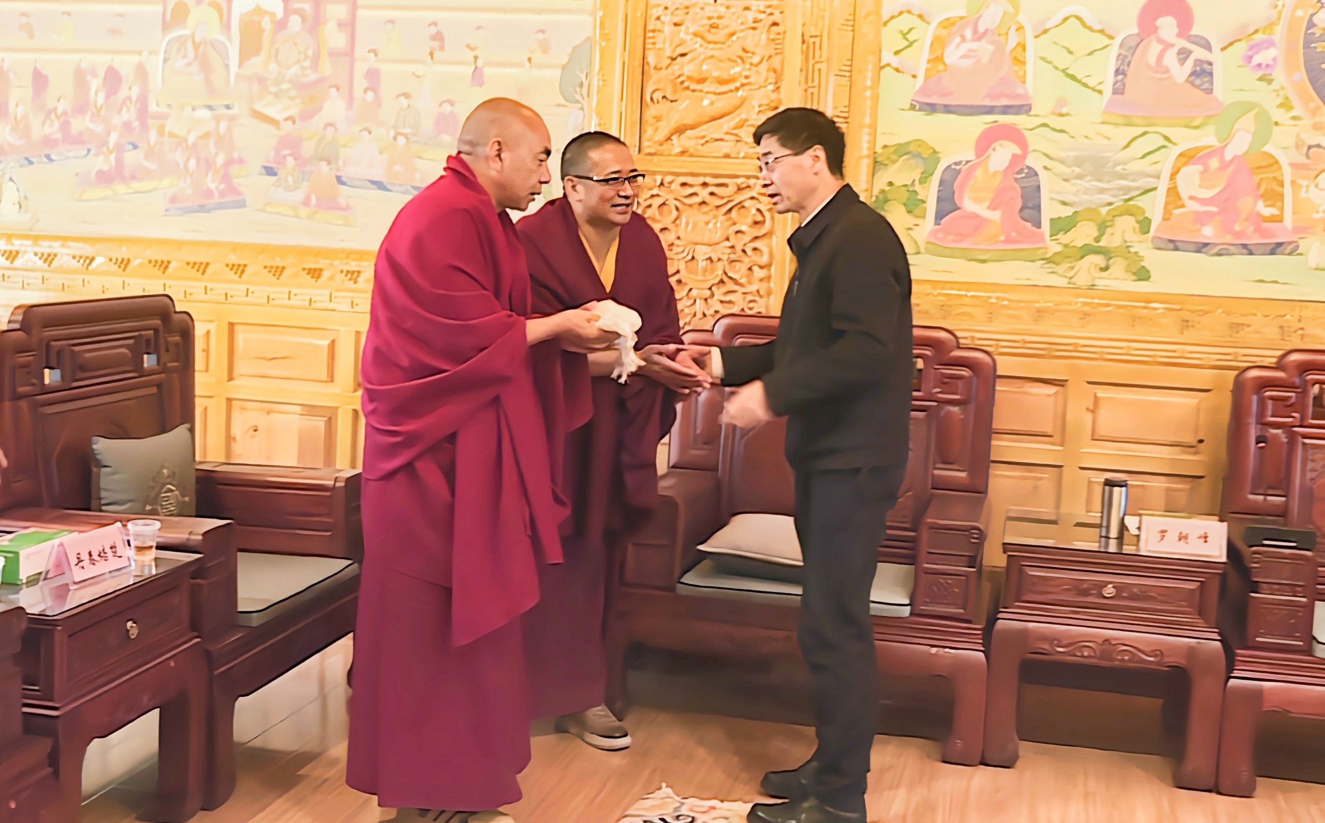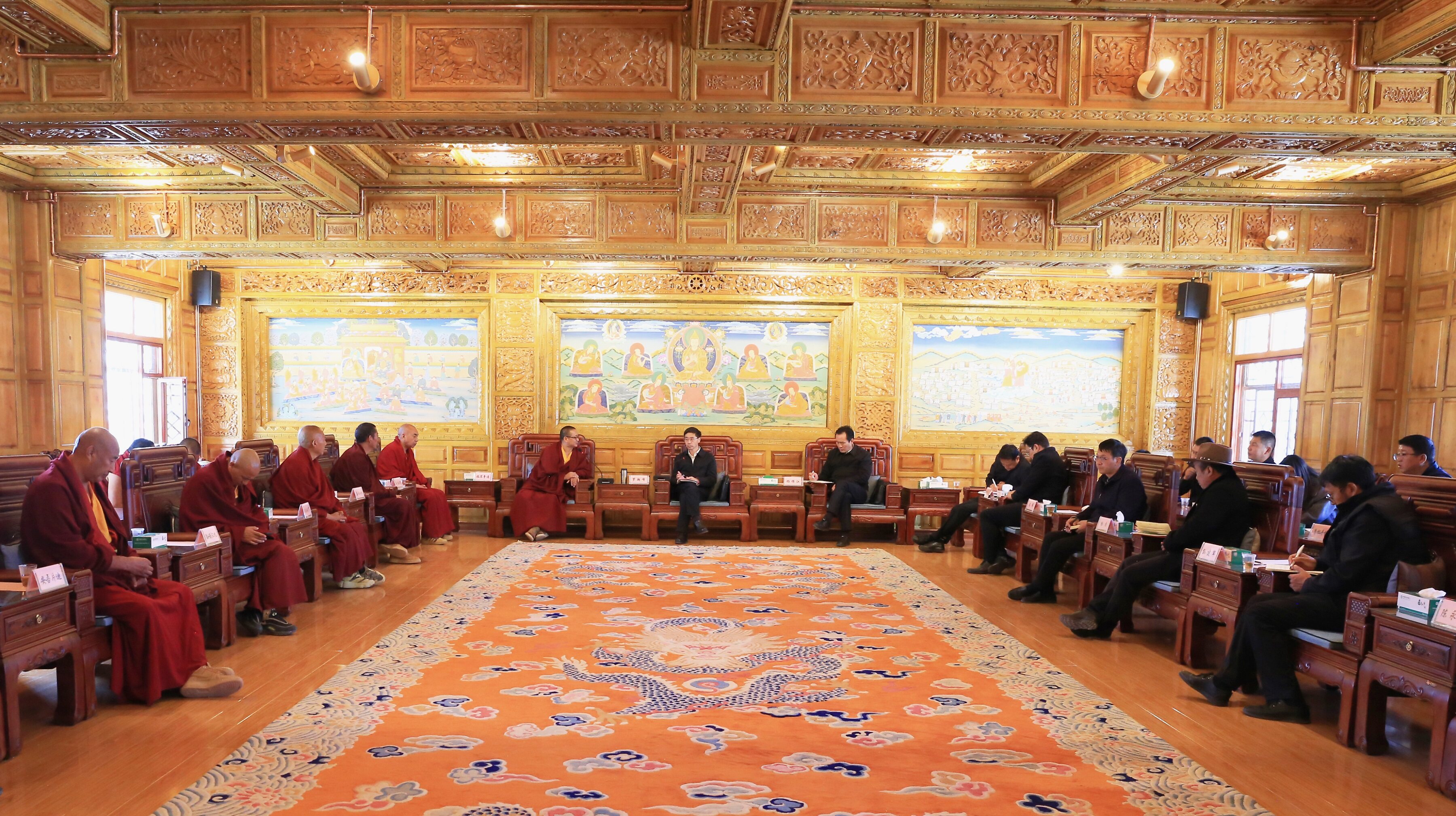 在松贊林寺,羅朝峰與宗教界代表人士深入交流座談,詳細(xì)了解僧人學(xué)修、生活等情況,面對(duì)面傾聽(tīng)他們的心聲、訴求,引導(dǎo)僧人們從多年來(lái)國(guó)家面貌、人民生活發(fā)生的變化,松贊林寺基礎(chǔ)設(shè)施、僧人修行條件的變化中憶苦思甜,感念黨恩。希望他們珍惜和諧穩(wěn)定的大好局面和良好的修行生活條件,深入踐行習(xí)近平總書記提出的“政治上靠得住、宗教上有造詣、品德上能服眾、關(guān)鍵時(shí)起作用”政治要求,繼承和發(fā)揚(yáng)愛(ài)國(guó)愛(ài)教的優(yōu)良傳統(tǒng),進(jìn)一步鑄牢中華民族共同體意識(shí)。