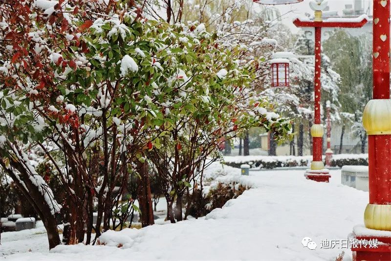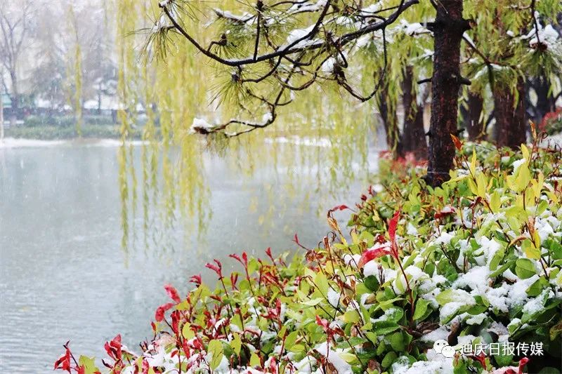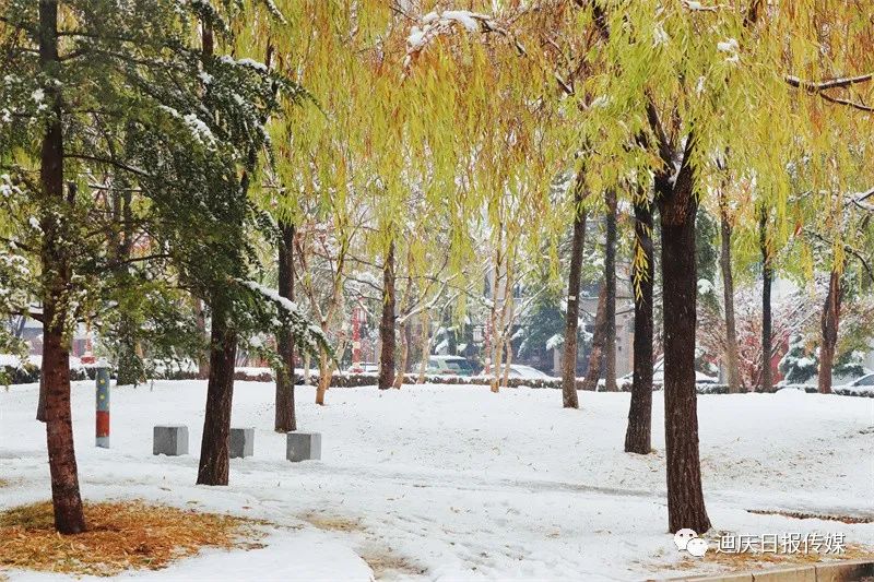 白雪與黃葉相映成趣,是這個(gè)初雪日別樣的風(fēng)景。