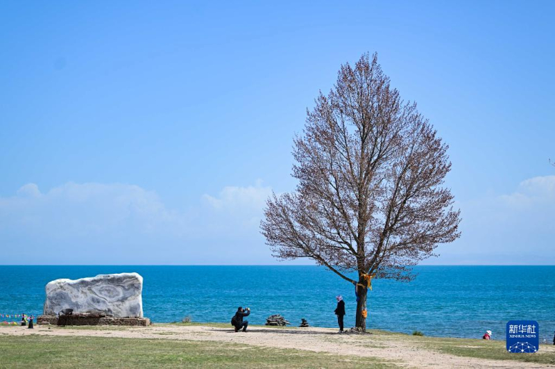 資料圖片:在青海湖二郎劍景區(qū),游客在拍照