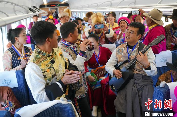 11月26日,麗江至香格里拉鐵路正式建成通車。圖為乘客載歌載舞慶祝鐵路通車。中新社記者 劉冉陽(yáng) 攝