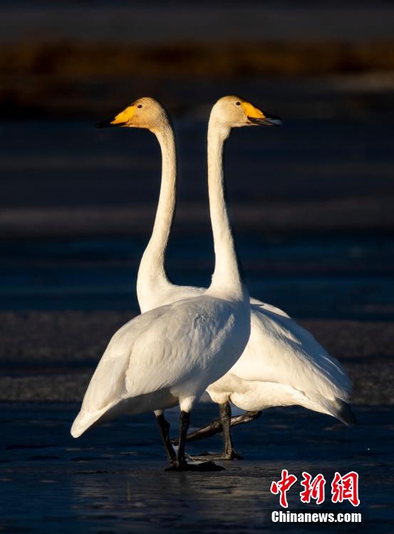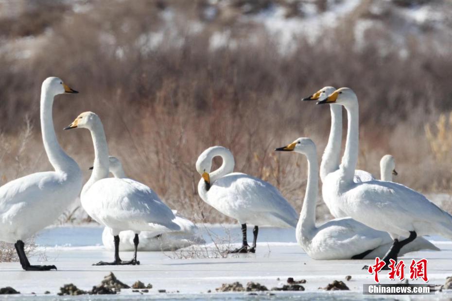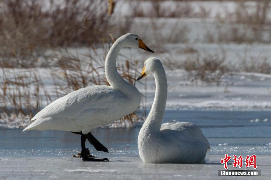 天鵝在湖冰上休憩。青??婶斂撕?托素湖省級自然保護(hù)區(qū) 供圖