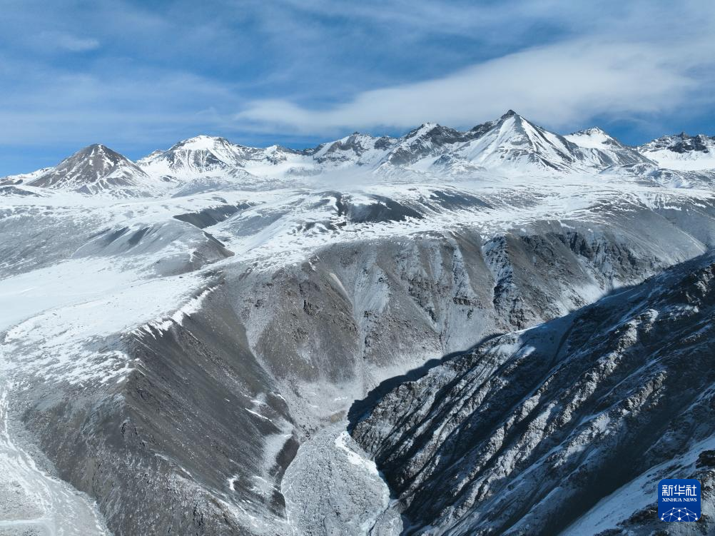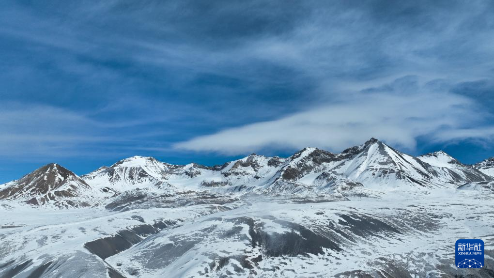 這是1月23日在青海省海北藏族自治州門源回族自治縣境內(nèi)拍攝的崗什卡雪峰(無(wú)人機(jī)照片)。新華社記者 張龍 攝