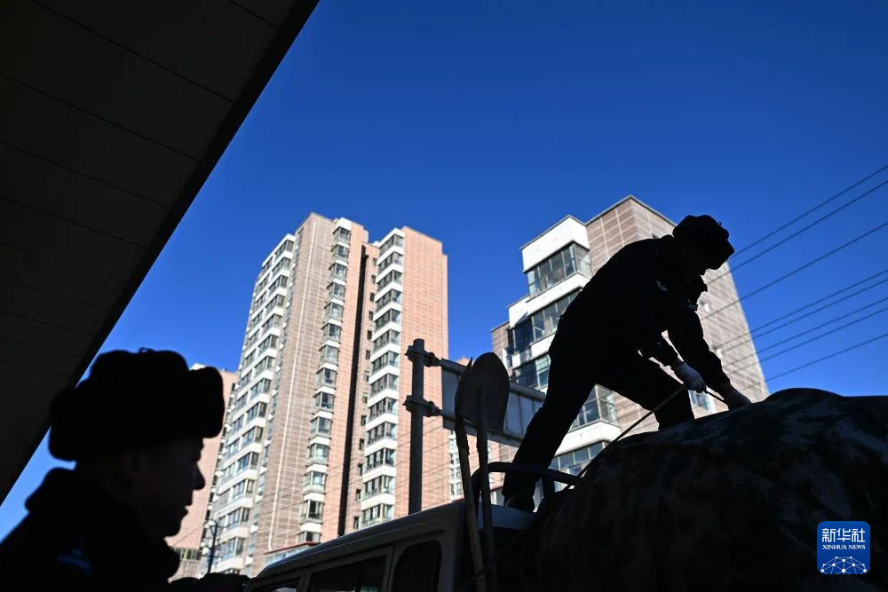 在青海省海西蒙古族藏族自治州格爾木市,可可西里森林公安局兩名巡山隊員正在裝車(1月18日攝)。新華社記者 張宏祥 攝