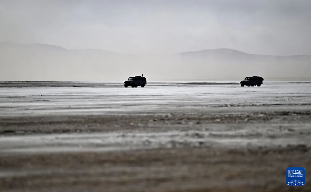 可可西里森林公安局巡山車輛在可可西里卓乃湖區(qū)域附近巡查途中(1月19日攝)。新華社記者 張宏祥 攝