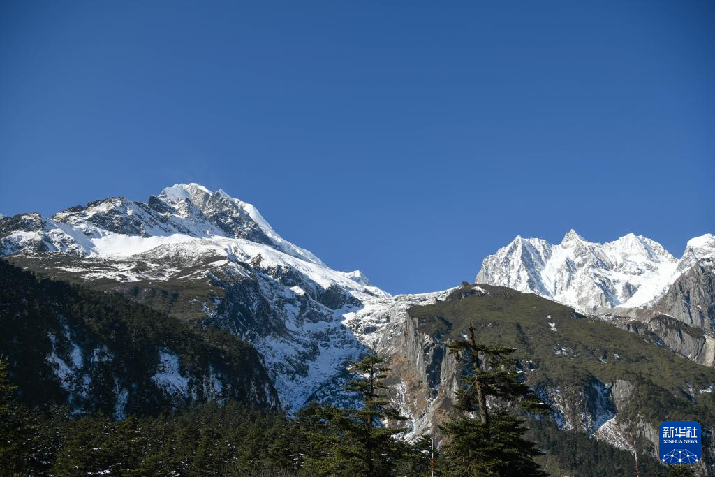 遠(yuǎn)眺貢嘎雪山和大冰瀑布。記者 劉忠俊 攝