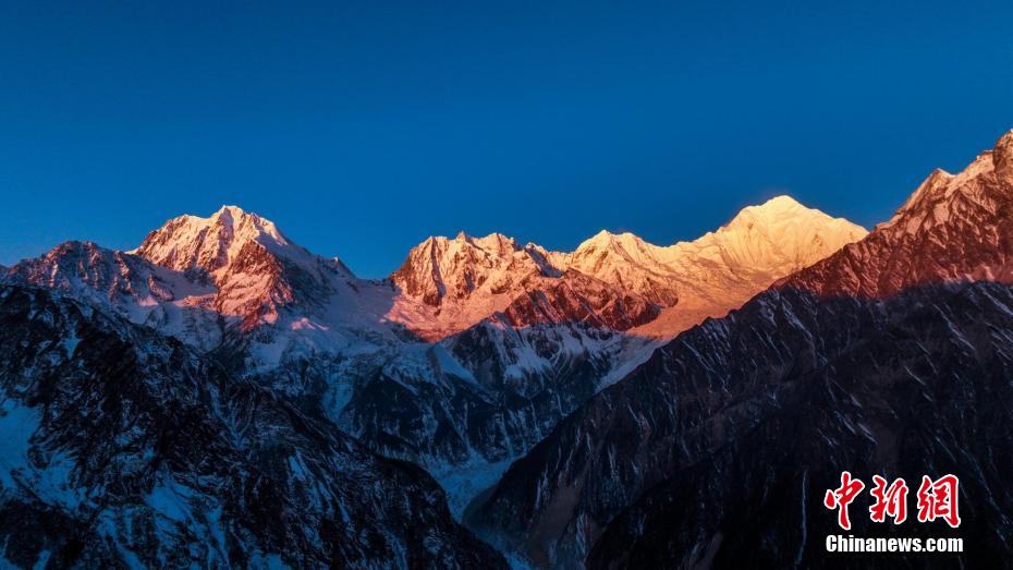 金燦燦的陽光照在金銀峰、貢嘎雪山上。記者 劉忠俊 攝