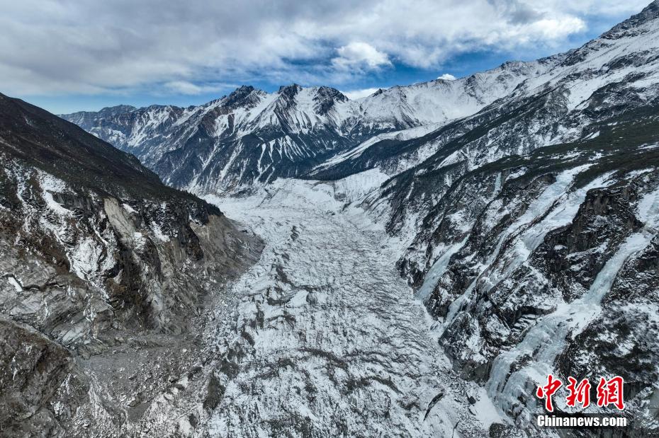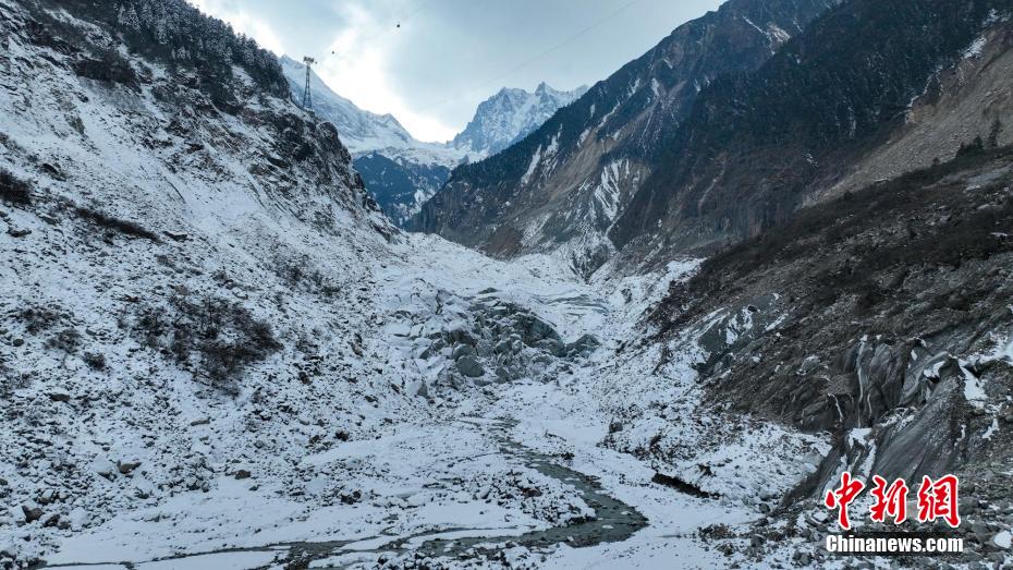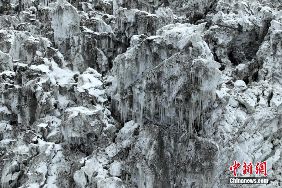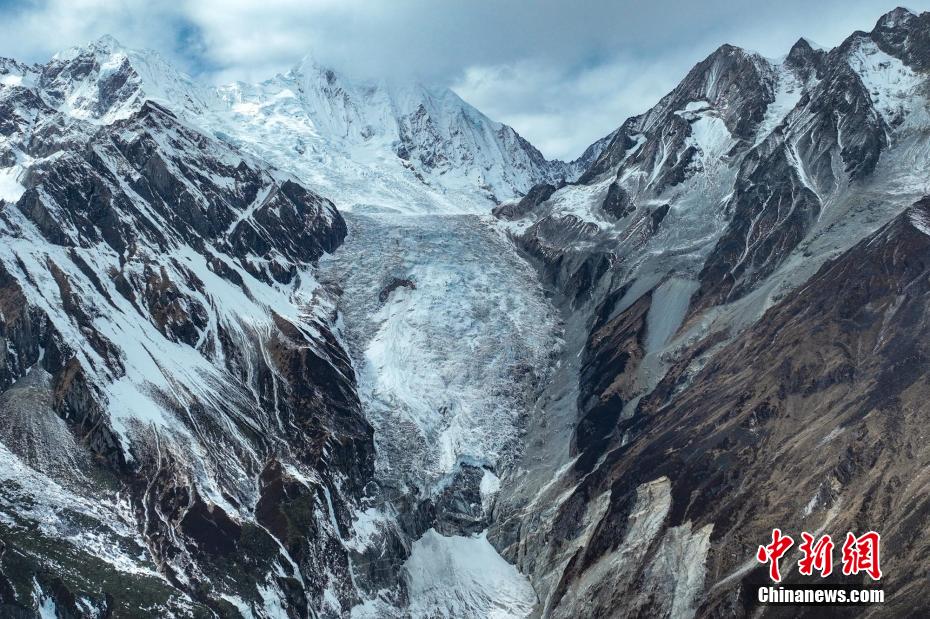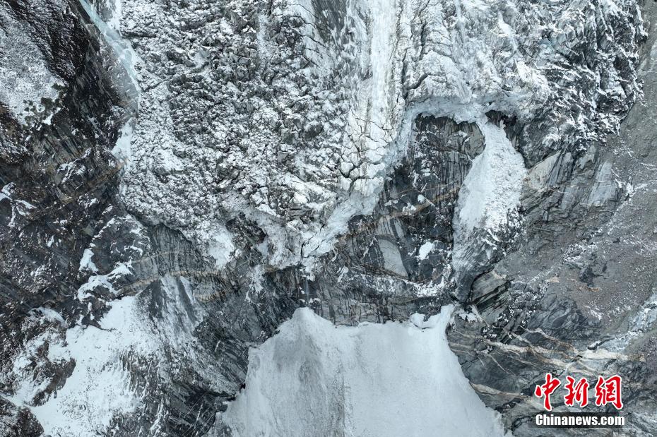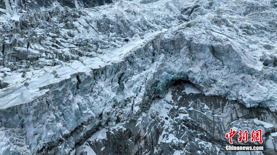 2月2日,四川省甘孜藏族自治州瀘定境內(nèi),一場雪后的貢嘎山披上了厚厚的“白紗”,在貢嘎山東坡順山而下的冰川沿海螺溝山谷綿延10多公里,就像一條“巨龍”盤在山谷中,十分壯觀。貢嘎山坐落于橫斷山系大雪山中段,主峰海拔7756米,被譽(yù)為蜀山之王。海螺溝冰川也是貢嘎山數(shù)十條冰川中規(guī)模最大、形態(tài)最美的一條。經(jīng)歷了2022年“9·5”瀘定地震后,海螺溝景區(qū)道路等重建工作完成,步游道、旅游服務(wù)設(shè)施升級,游客逐步回升。航拍鏡頭下的海螺溝冰川粒雪盆下端的“冰川冰”。記者 劉忠俊 攝