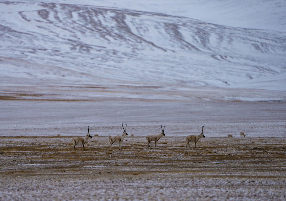 生活在三江源國家公園唐北片區(qū)的藏羚羊(2024年2月1日攝)。新華社記者 儲國強 攝
