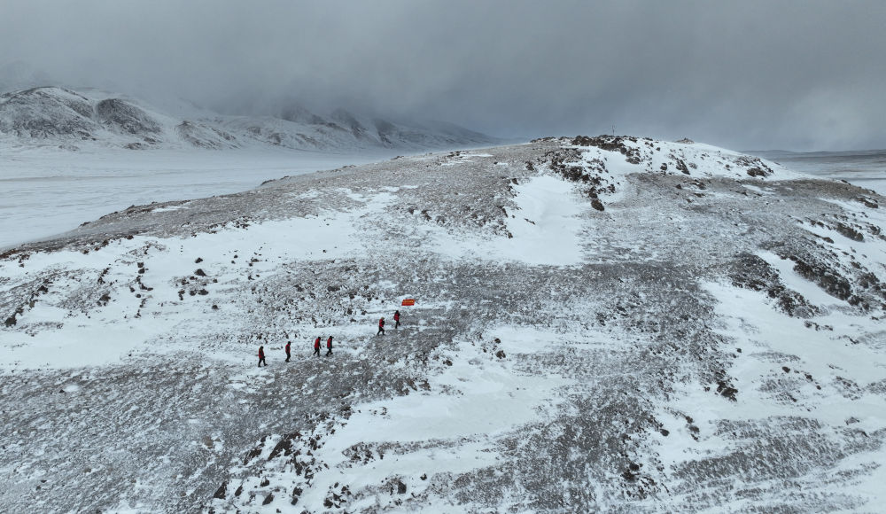 瑪曲鄉(xiāng)長江源黨員環(huán)保志愿隊在巡邏守護長江源(2024年2月2日攝,無人機照片)。新華社記者 晉美多吉 攝