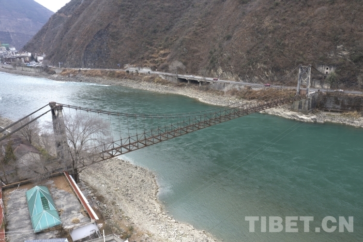 素有“甘孜東大門(mén)”之稱(chēng)的四川省甘孜藏族自治州瀘定縣是長(zhǎng)征精神和“兩路”精神的重要交匯地,在距離名揚(yáng)中外的瀘定橋大約500米的地方,坐落著川藏公路上第一座鋼架索橋——大渡河橋。