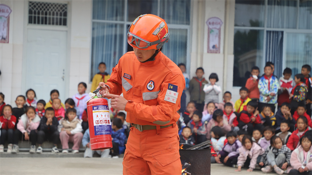 此次演練,迪慶州森林消防大隊(duì)維西駐防分隊(duì)結(jié)合校園設(shè)施實(shí)際和校園消防安全特點(diǎn),著重對(duì)發(fā)生地震、火災(zāi)時(shí)如何正確逃生等內(nèi)容進(jìn)行了詳細(xì)講解示范和演習(xí)演練。為讓師生們能夠更直觀地了解掌握滅火器及其操作與使用,活動(dòng)專門設(shè)置了模擬火情,由指戰(zhàn)員現(xiàn)場(chǎng)演示滅火器操作使用,并指導(dǎo)多名師生練習(xí)和操作使用滅火器。