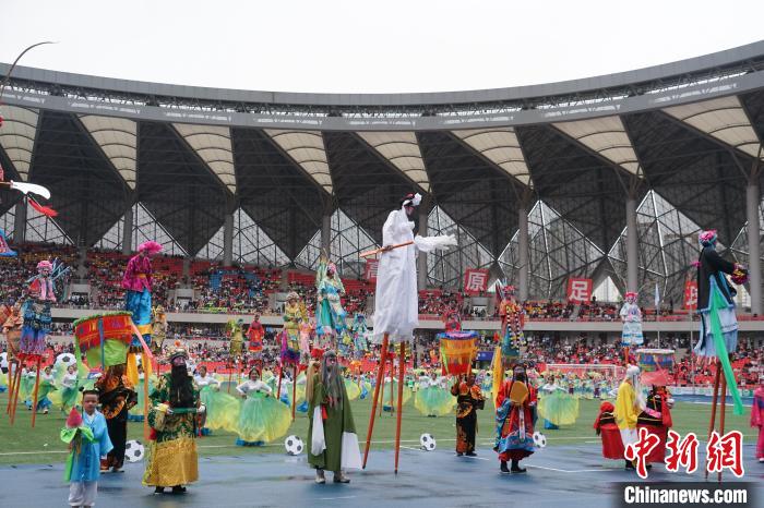 圖為開幕式現(xiàn)場社火高蹺進(jìn)行表演。馬銘言 攝