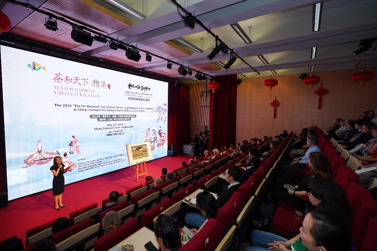 這幅作品由中國著名藝術(shù)家賀昆創(chuàng)作,通過木板套刻和層層渲染,鐫刻了全球首個(gè)茶主題世界文化遺產(chǎn)“普洱景邁山古茶林文化景觀”人、茶、林共生的美好畫面。當(dāng)?shù)貢r(shí)間5月24日,在布魯塞爾中國文化中心舉辦的“茶和天下·雅集”比利時(shí)站活動(dòng)啟動(dòng)儀式暨中國(云南)茶文化系列交流活動(dòng)上,現(xiàn)場揭幕了這幅來自云南的作品。
