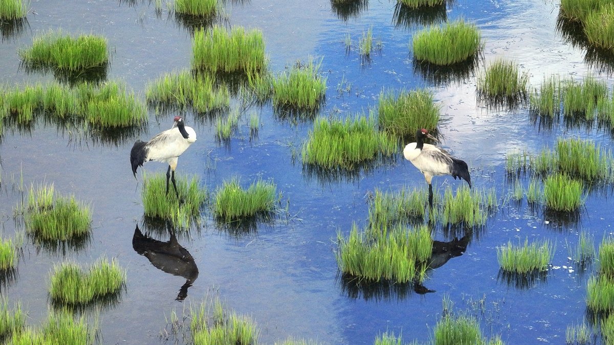 若爾蓋濕地是黑頸鶴的重要繁衍棲息地,為它們提供了豐富的食物資源和安全的棲息環(huán)境。根據(jù)經(jīng)驗,每年3月,黑頸鶴會從900多公里外的越冬地云南、貴州飛赴若爾蓋濕地。4月底至6月初,黑頸鶴都會在繁育地分散開來完成產(chǎn)卵、孵化,同年11月左右,它們將會帶著新繁育的小鶴遷徙到云南貴州等地越冬,以此往復。