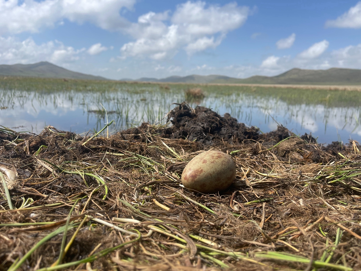 今年3月中旬,首批在云貴高原越冬的黑頸鶴來到若爾蓋濕地國家級自然保護區(qū),在保護區(qū)進行新一輪適應和筑巢后,迎來了繁育期。這對正在產(chǎn)卵的黑頸鶴夫婦是當?shù)氐摹袄吓笥选保衲暌咽撬鼈冊诖诉B續(xù)繁育的第五個年頭。