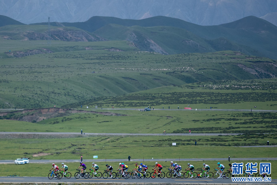 7月10日,2024第二十三屆環(huán)青海湖國際公路自行車賽第四賽段貴德-共和比賽現(xiàn)場。新華網(wǎng) 潘彬彬 攝