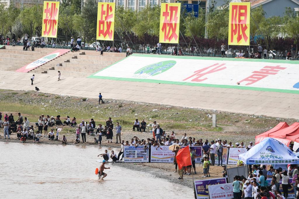 2017年8月5日,第13屆“化青杯”中國·青海國際搶渡黃河極限挑戰(zhàn)賽預(yù)賽在青海省海東市循化撒拉族自治縣舉行。新華社 吳剛 攝