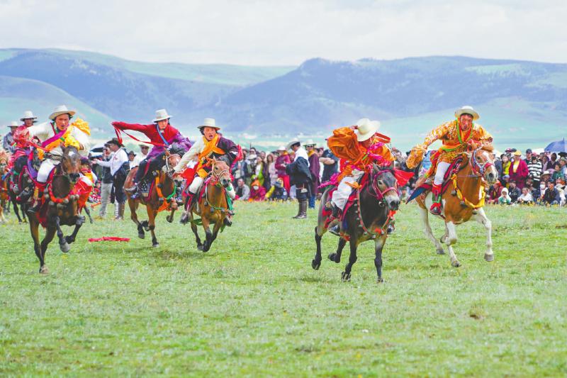 “天空之城,萬馬奔騰?!?月30日至8月1日,一年一度的理塘縣“八一”賽馬會(huì)盛大舉行。在為期三天的活動(dòng)中,街市巡馬、草原賽馬、馬上競(jìng)技、馬背漫游、民族服飾模特大賽等精彩活動(dòng)輪番上演,為游客奉上沉浸式體驗(yàn)高原馬術(shù)的“速度與激情”。