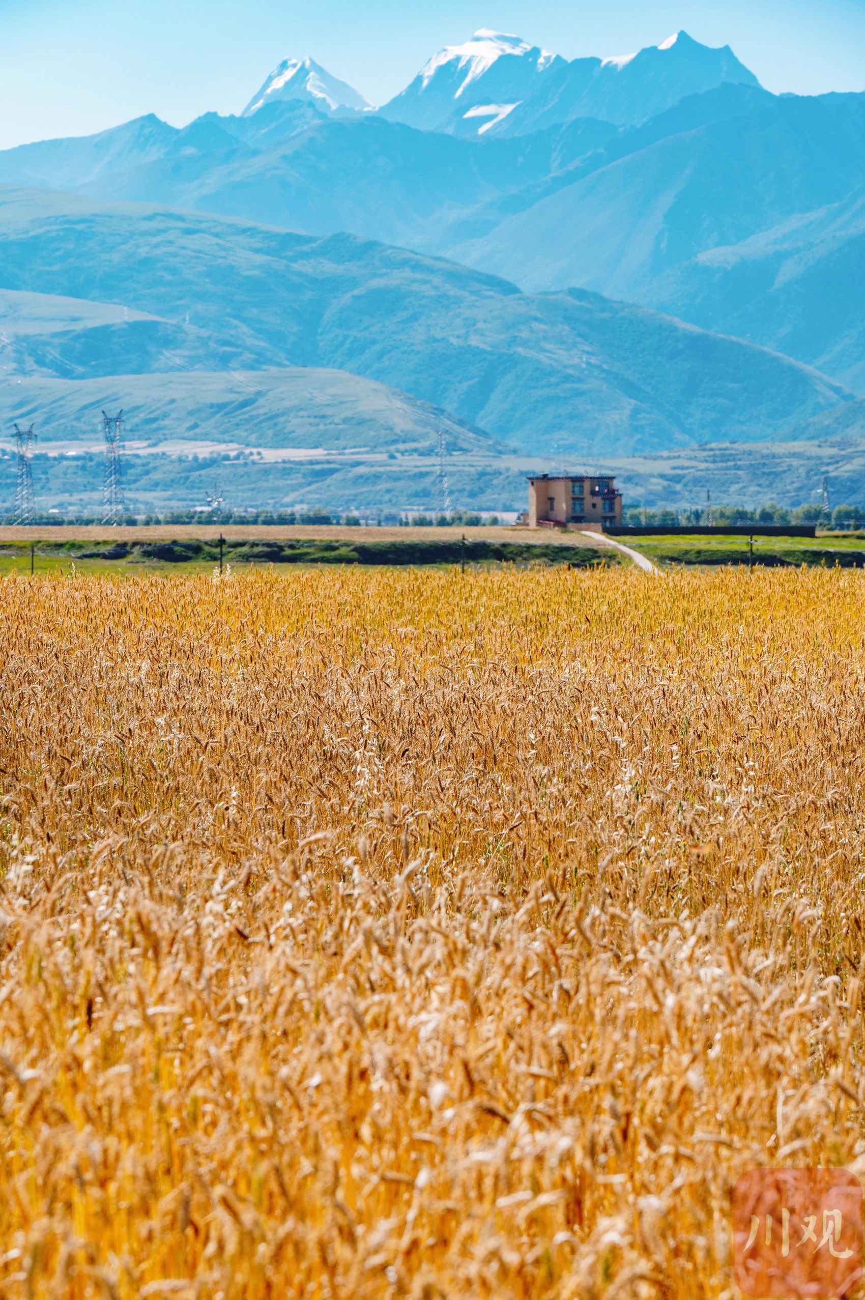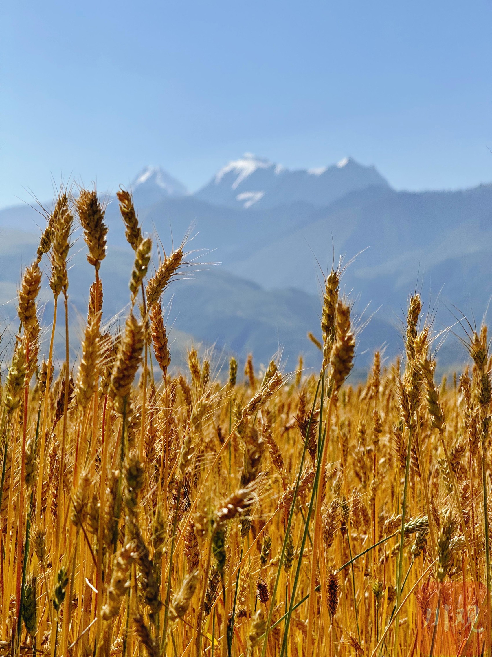 雪山下的青稞地中的青稞已經(jīng)成熟。