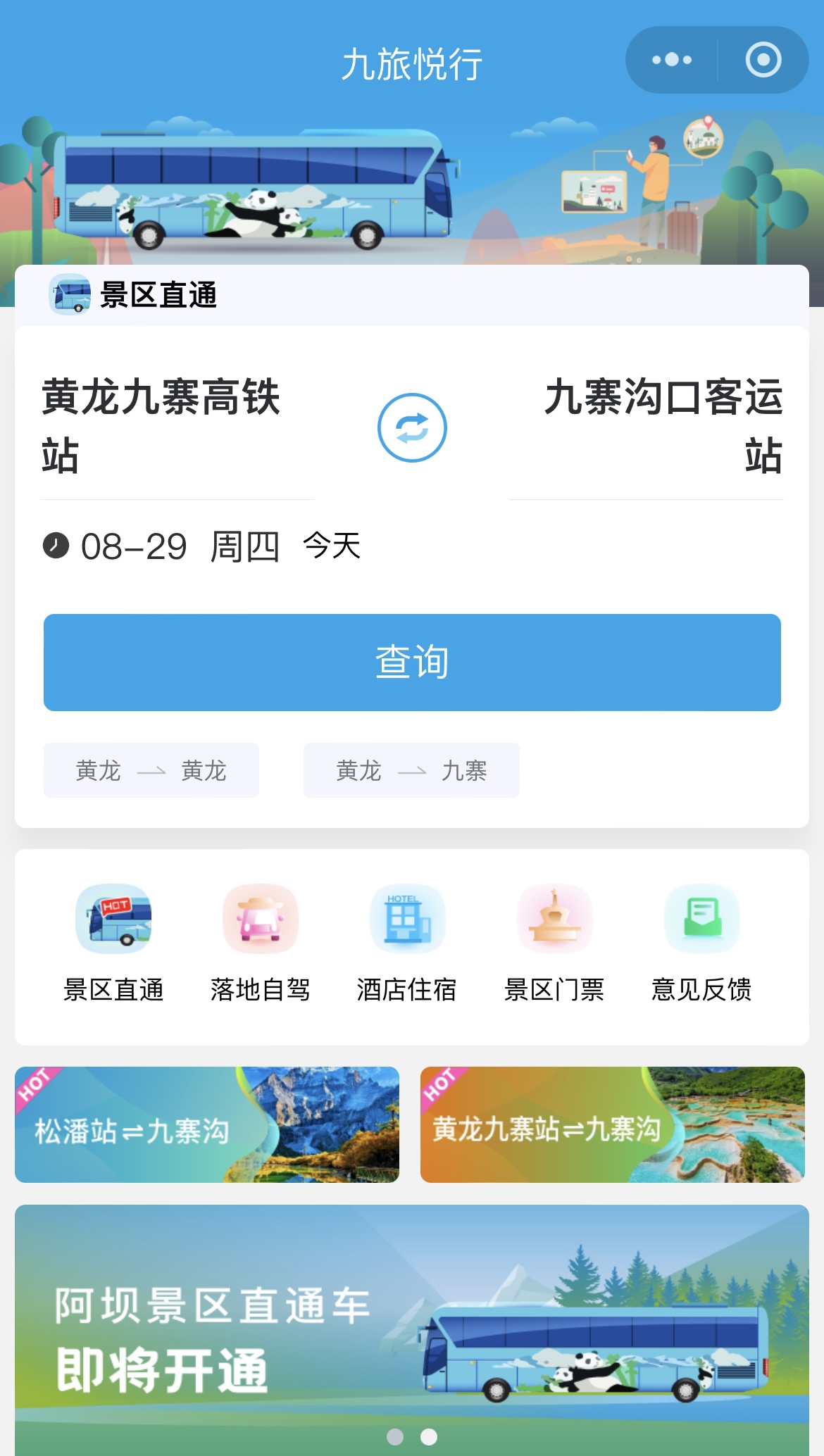 游客可以在“九旅悅行”接駁車預(yù)訂小程序購買接駁車票、景區(qū)門票或落地自駕產(chǎn)品,也可以出站后前往游客中心進(jìn)行線下購票。