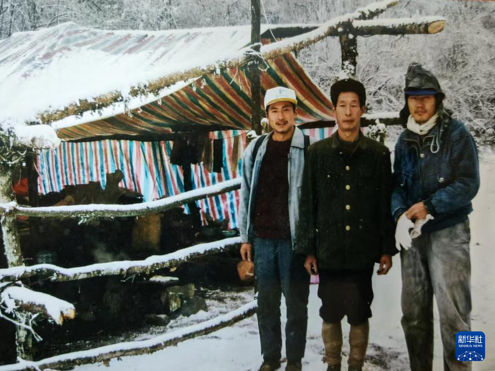 這是1996年唐玉林(左)、父親唐代貴(中)和保護(hù)區(qū)科研人員顧海軍在四川白河國(guó)家級(jí)自然保護(hù)區(qū)內(nèi)的合影(翻拍照片)。新華社記者 王曦 攝