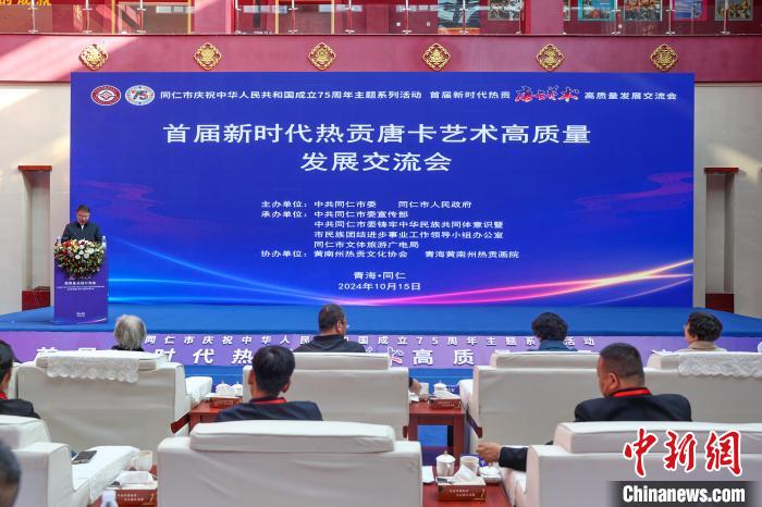 圖為首屆新時代熱貢唐卡藝術(shù)高質(zhì)量發(fā)展交流會現(xiàn)場。薛蒂 攝