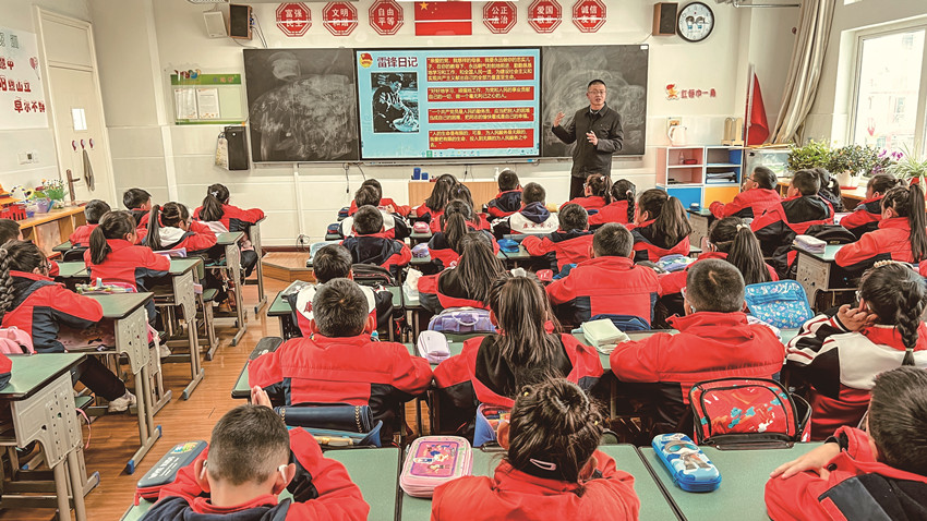 共青團康定市委負責(zé)人為少先隊員宣講雷鋒精神。