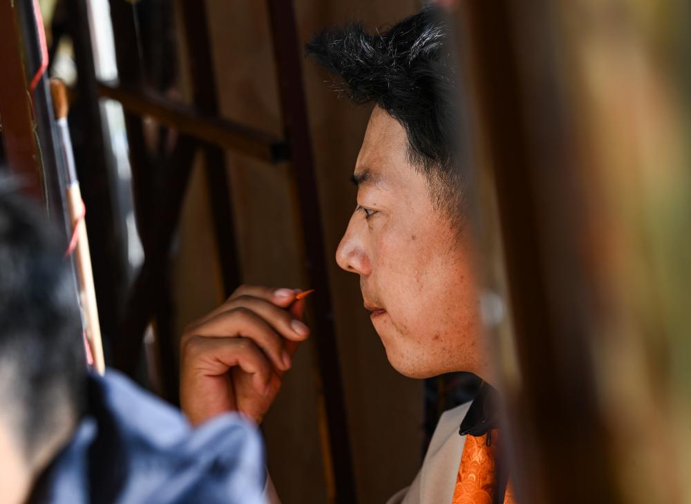 足麥郎卡在繪制唐卡(11月3日攝)。