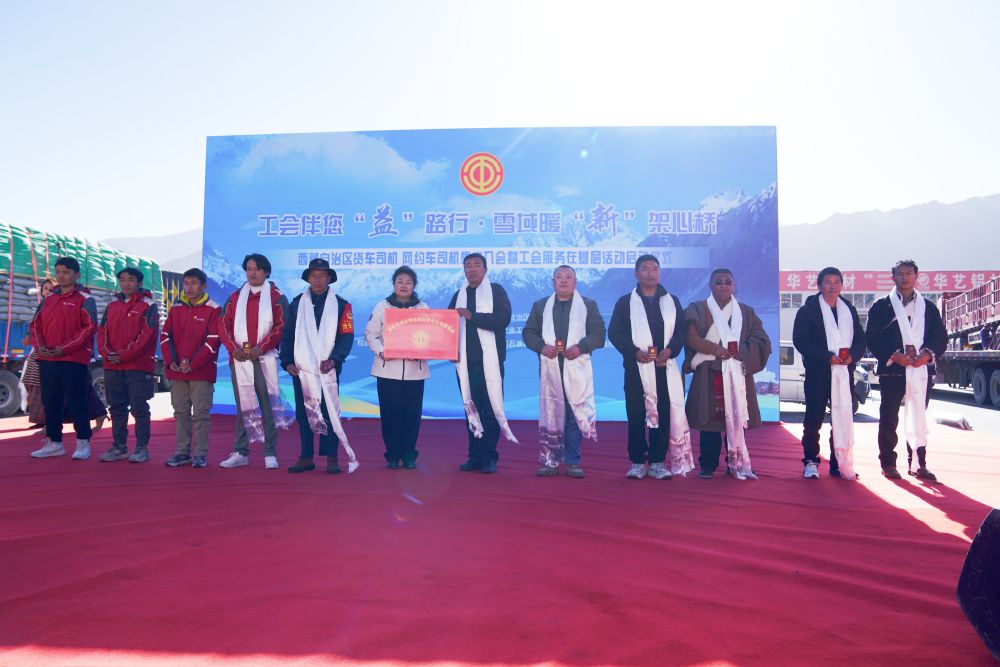 12月5日,西藏自治區(qū)貨車司機(jī)、網(wǎng)約車司機(jī)集中入會暨工會服務(wù)在基層活動啟動儀式在拉薩城投物流園舉行。新華社發(fā)