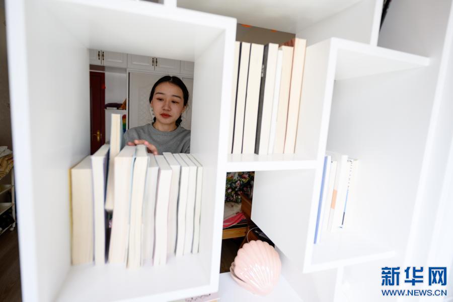 2月10日,在西藏自治區(qū)山南市乃東區(qū),格央在家中整理書(shū)架。書(shū)架上擺滿了她購(gòu)買(mǎi)的各類(lèi)文學(xué)書(shū)籍。新華社記者 劉金海 攝