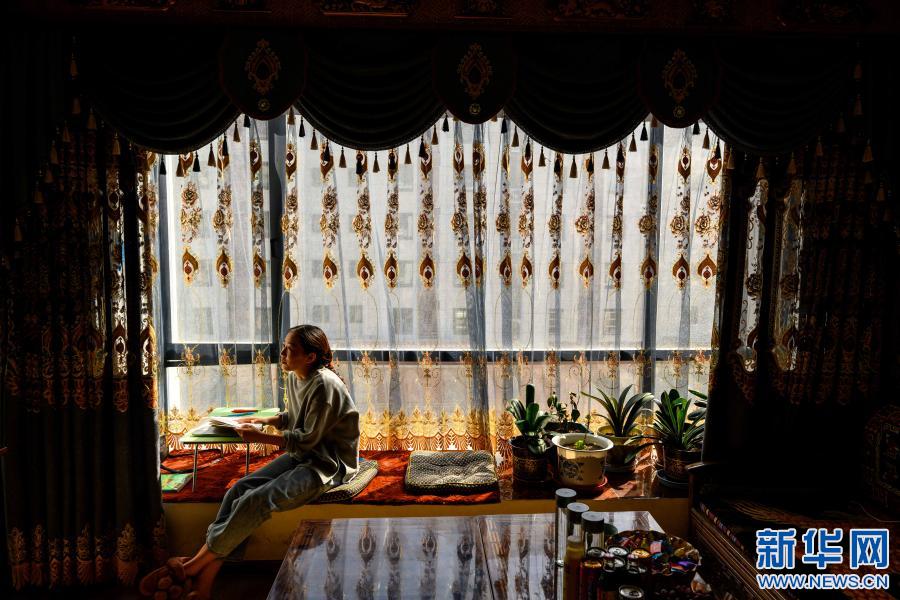 2月10日,在西藏自治區(qū)山南市乃東區(qū),格央在家中研讀文學(xué)理論書(shū)籍。新華社記者 劉金海 攝