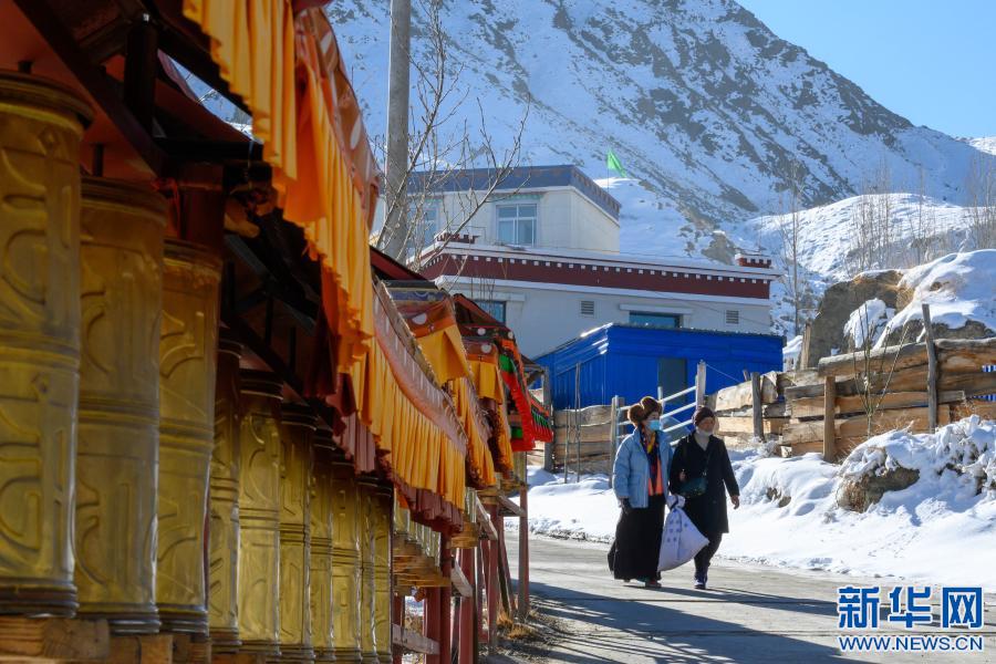 2月12日,在西藏自治區(qū)山南市乃東區(qū)澤當(dāng)鎮(zhèn),格央(左)和家人一起,在藏歷新年第一天轉(zhuǎn)山祈福。新華社記者 劉金海 攝
