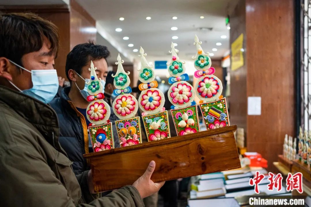 拉薩民眾購(gòu)買(mǎi)酥油花。何蓬磊 攝