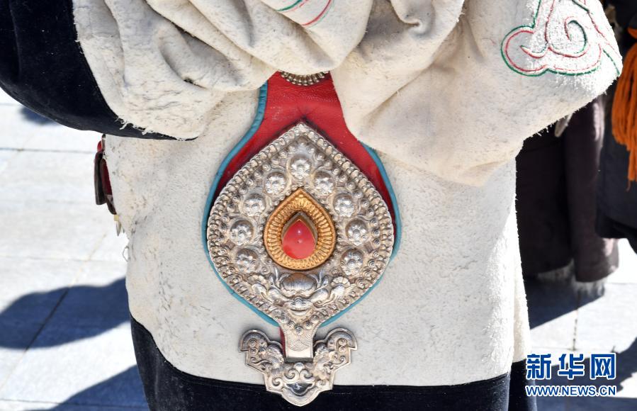 藏北當(dāng)雄縣幾名男子的羊皮袍子上的美麗花紋(2月12日攝)新華社記者 覺果 攝