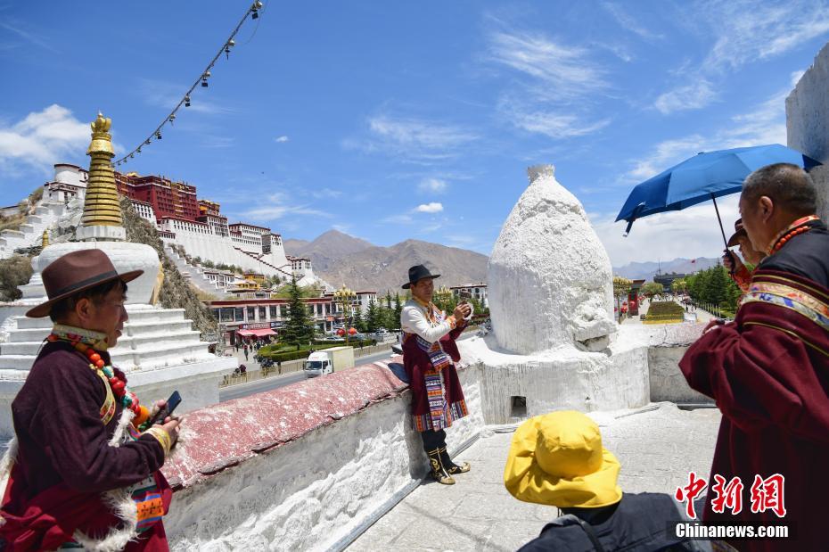 西藏官方發(fā)布數(shù)據(jù)顯示,2021年一季度,西藏接待國內(nèi)外游客171萬人次,同比增長2.4倍,實(shí)現(xiàn)旅游收入13.78億元人民幣,增長3.1倍?!拔逡弧奔倨趯⒅粒诶_布達(dá)拉宮、八廓街等地可以看到,身著藏族傳統(tǒng)服飾拍照留念的游客絡(luò)繹不絕,西藏旅游預(yù)計(jì)將迎來小高潮。圖為4月29日,藍(lán)天白云映襯下的布達(dá)拉宮。中新社發(fā) 貢嘎來松 攝